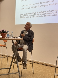 Im Mittelpunkt des Impulsvortrags von Dr. Claus Koch stand die Frage: „Was brauchen Kinder für ein gelingendes Aufwachsen?“ Er betonte die Bedeutung von Bindung und