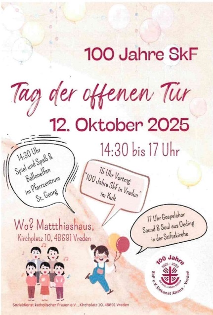 Die Mitglieder des Tageseltern – Vereins haben ihre Arbeit beim Tag der offenen Tür am 12.10.2025 in Vreden im Rahmen des 100-jährigen Jubiläums des SkF und ihres 25-jährigen Bestehens den geladenen Gästen vorgestellt. Dazu wurde der örtliche Hamalandtag genutzt.